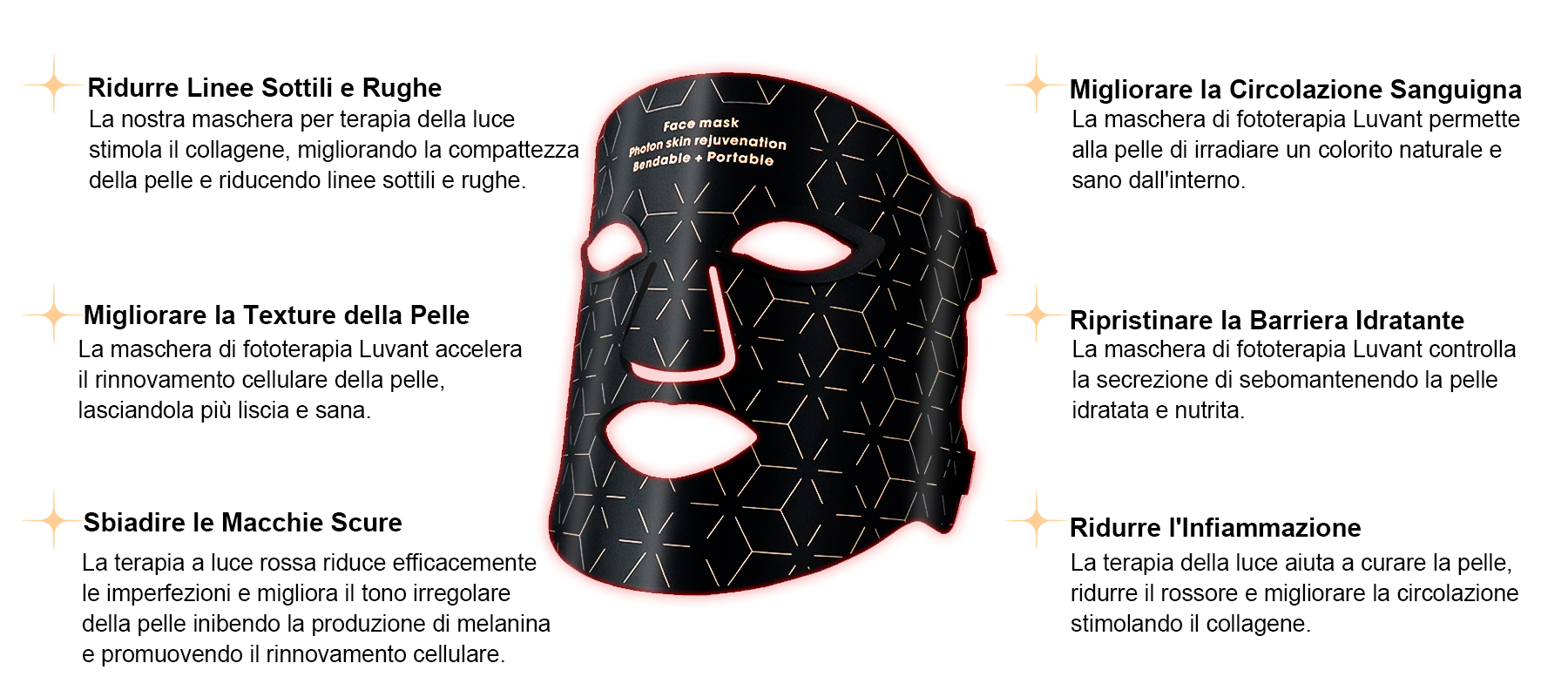 Ecco perché ogni caratteristica della Maschera LED Luvant, dal design intelligente e senza mani alla fototerapia mirata e alla comoda vestibilità in silicone, è fatta su misura per voi. Non è solo uno strumento di bellezza: è il vostro “restauratore di luminosità” personale, che vi aiuterà a trasformare la vostra pelle senza sforzo e a recuperare la vostra radiosità. Scegliete la Maschera LED Luvant per assaporare senza sforzo ogni momento di cura di voi stesse.
